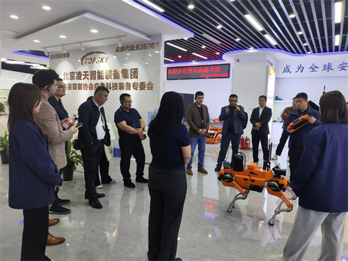 代表团随后参观了凌天智能装备集团股份有限公司,企业现场展示了四足机器狗,介绍了应急无人机、消防侦检装备、特种机器人等智能装备。